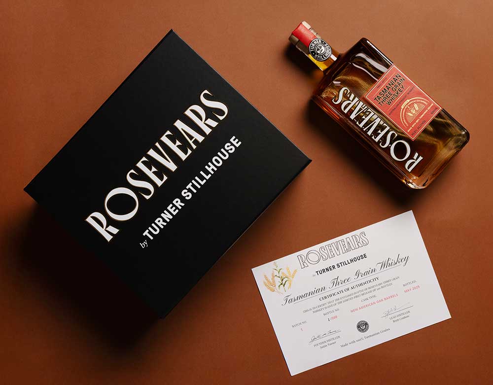 With an in-house grain to glass approach, we only source our grains from Tasmania and Rosevears is milled, mashed and aged all onsite at Turner Stillhouse.